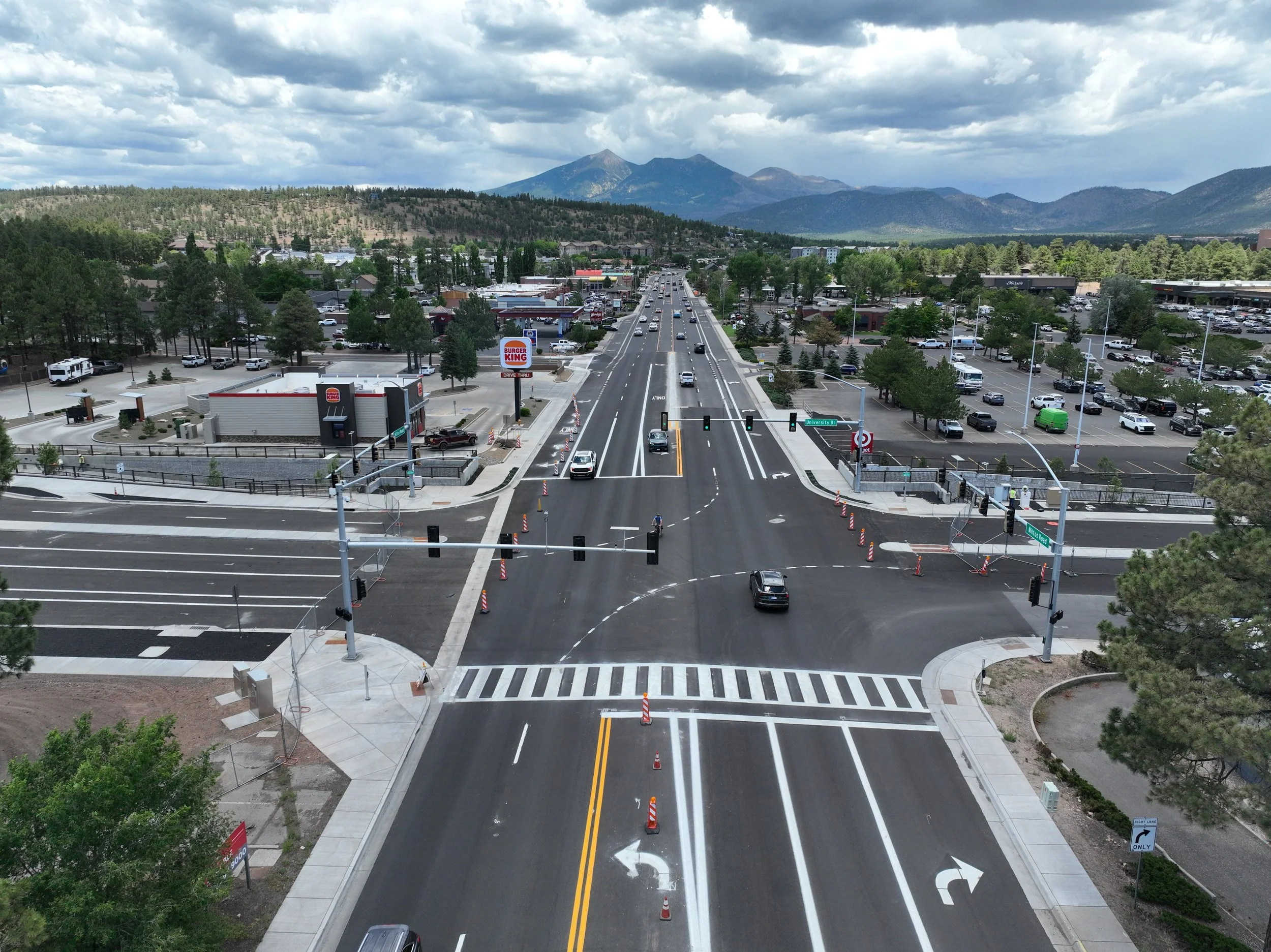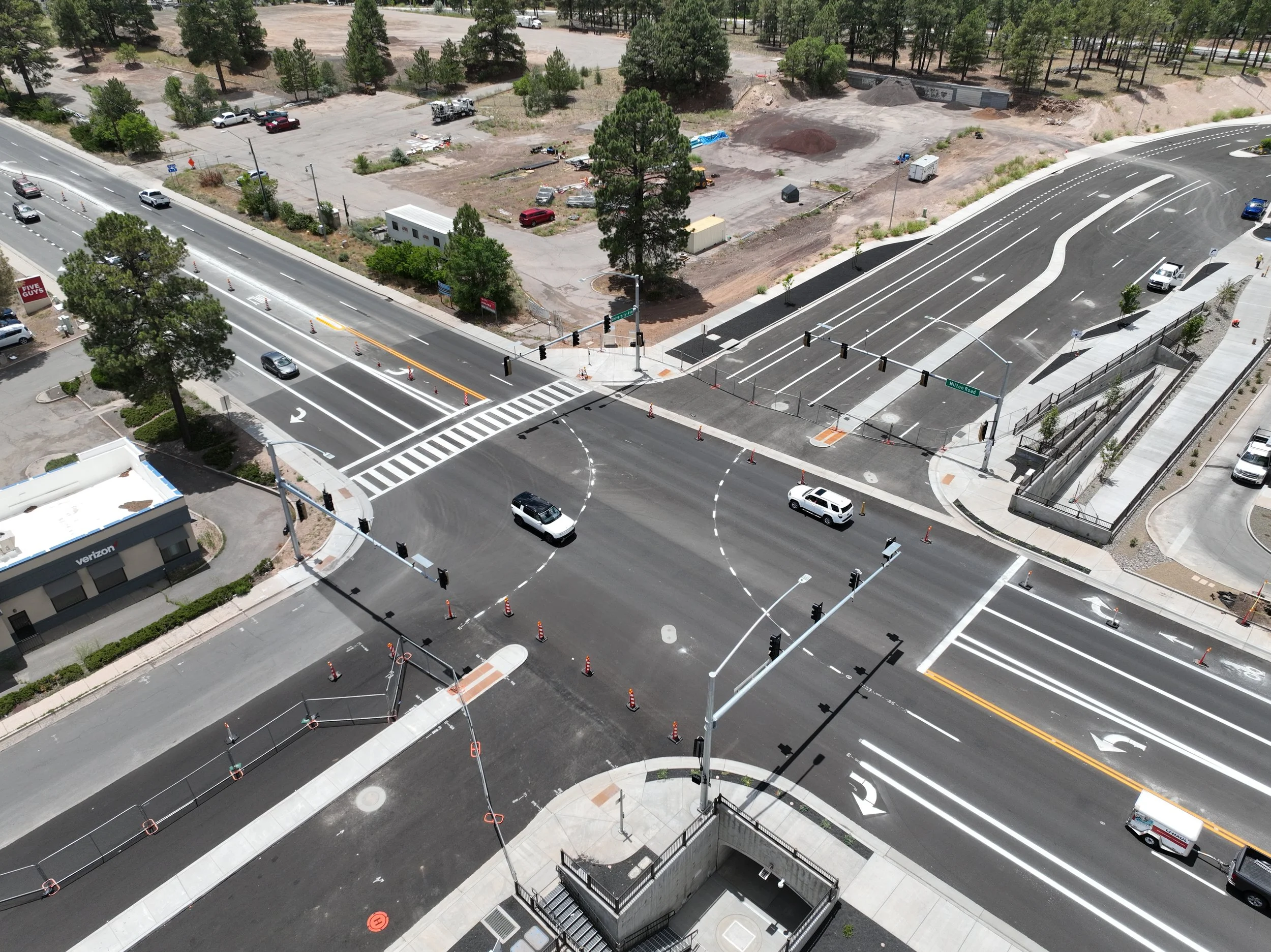 The City of Flagstaff, their contractor, Eagle Mountain Construction, along with the Arizona Department of Transportation (ADOT), have reached substantial completion of the Beulah/University Realignment Project. With this work complete, all roads and the pedestrian underpass are now open! Remain alert as crews complete final clean-up operations throughout the coming weeks. Please be patient as you and your fellow motorists get used to the new roadway configuration and follow the marked signage to get to your destination.